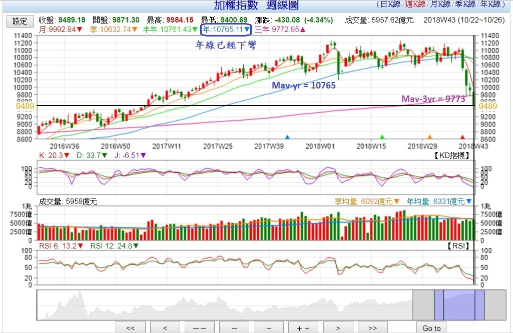 話說10/26週五收盤點數(9489)..距離Mav-3yr其實不遠