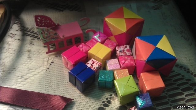 我的老公從十月底就開始折紙因為我的行業是補教業的主管,兼帶一個班當時碰上萬聖節要佈置教室身為主管的我實在沒時間想說截止日前完成就好為了省時間我買了現成的萬聖節飾品一個早上把教室佈置得美美的結果我手下的老師(倚老賣老)酸酸的說她可是沒花什麼錢就佈置完了回家說給寶貝聽他馬上替我反擊用色紙折了好多東西給我佈置這個聖誕節他也用折紙來當我的禮物,花了很多時間和眼力雖然沒花什麼錢可是心意滿滿花了近兩個月 ....我想女生應該會受用吧!