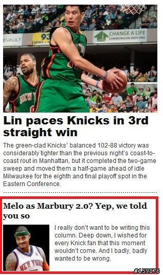 加菲爾 wrote:這也是佐證了教練殺手...(恕刪) 沒錯畢竟現在的Knick是為melo打造的團隊也就是只要melo在,用啥教練都無所謂了我想只要J-Lin懂得功高震主的觀念光芒不外露...應該可以跟著melo吃香喝辣...
