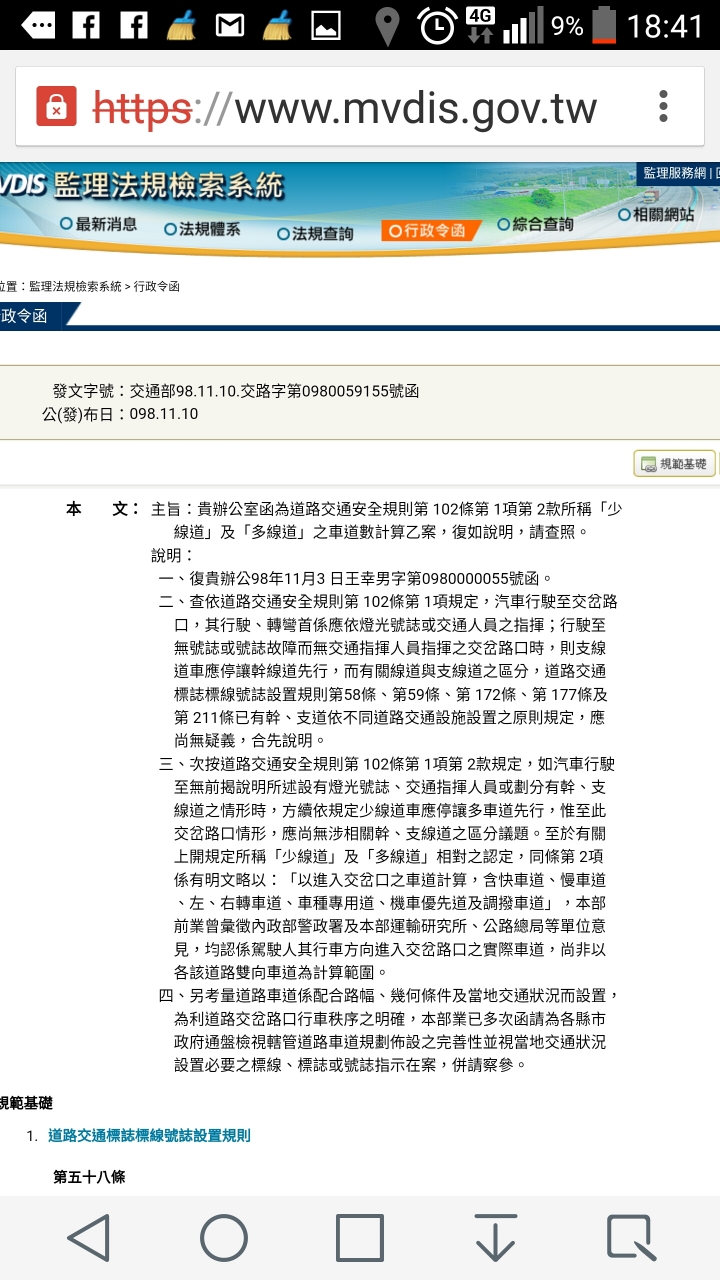 波多野結紮 wrote:你是單行道耶...(恕刪) 二、本案經彙徵內政部警政署及本部運輸研究所、公路總局等單位意 見咸認,依案內所附圖示,雖二道路路幅寬度有所差異,且一設 有分向標線,另則未劃設;惟依道路交通安全規則第 102條第 2 項規定計算,其進入交岔路口之實際車道,應均以1車道計算。對方也是算一車道