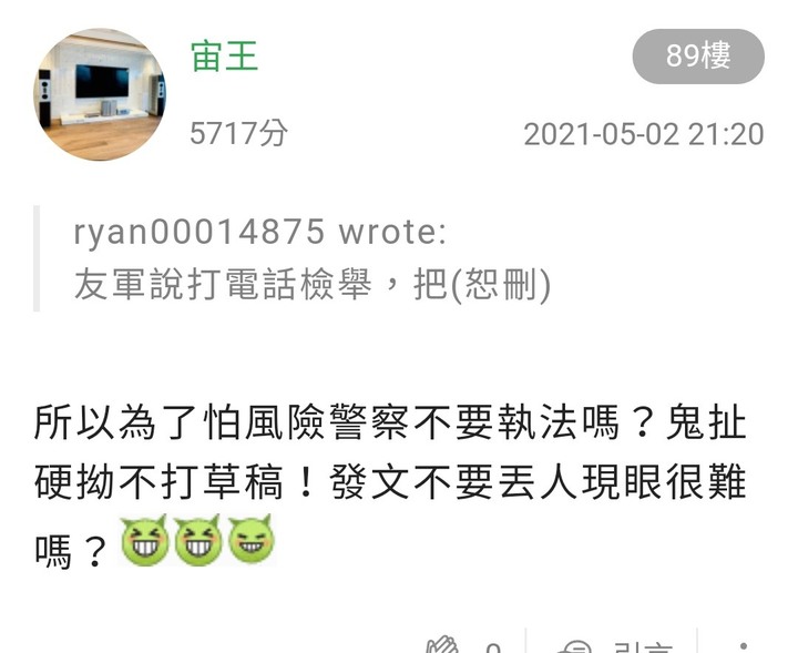 ryan00014875 wrote:你說友軍嗎?...(恕刪) 你對別人文章內容理解的邏輯跟扭曲的思想。我只能替你感到惋惜。還有,我不是友軍。只是一個愛嘴砲,敢公佈自己車牌的人不像某些人,躲在螢幕後面嗆聲最後還龜縮不敢公佈自己車牌的(道德感有強烈潔癖的不要自己對號入座,謝謝)