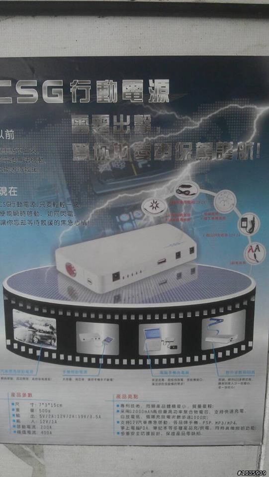 ●Sumole-電飽品名:Sumole-電飽尺寸:160*75*28mm重量:430g容量:18000mah輸出:5V 2A-12V 2A-19V 3.5A-12V汽車啟動端口輸入:12V 1A完全充飽時間:約四小時啟動電流:200A峰值電流:400A使用溫度範圍:0度~60度另外一間 ~~也是說汽車救援~新產品 ~ 沒用過我不下評語可望能做出個台灣之光,不要到頭來...Made in China 唉....