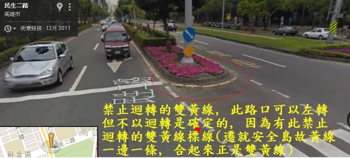 1.車禍確切地點在民生二路路口,我從中華三路左轉往民生二路,對方則是在民生二路快車道(外側)迴轉。