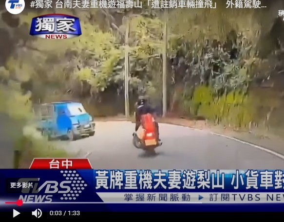 台南夫妻🏍️重機遊福壽山🏔️ 遇到🚗小貨車<遭註銷車輛撞飛>正面撞擊(外籍人士)🏃💨💨