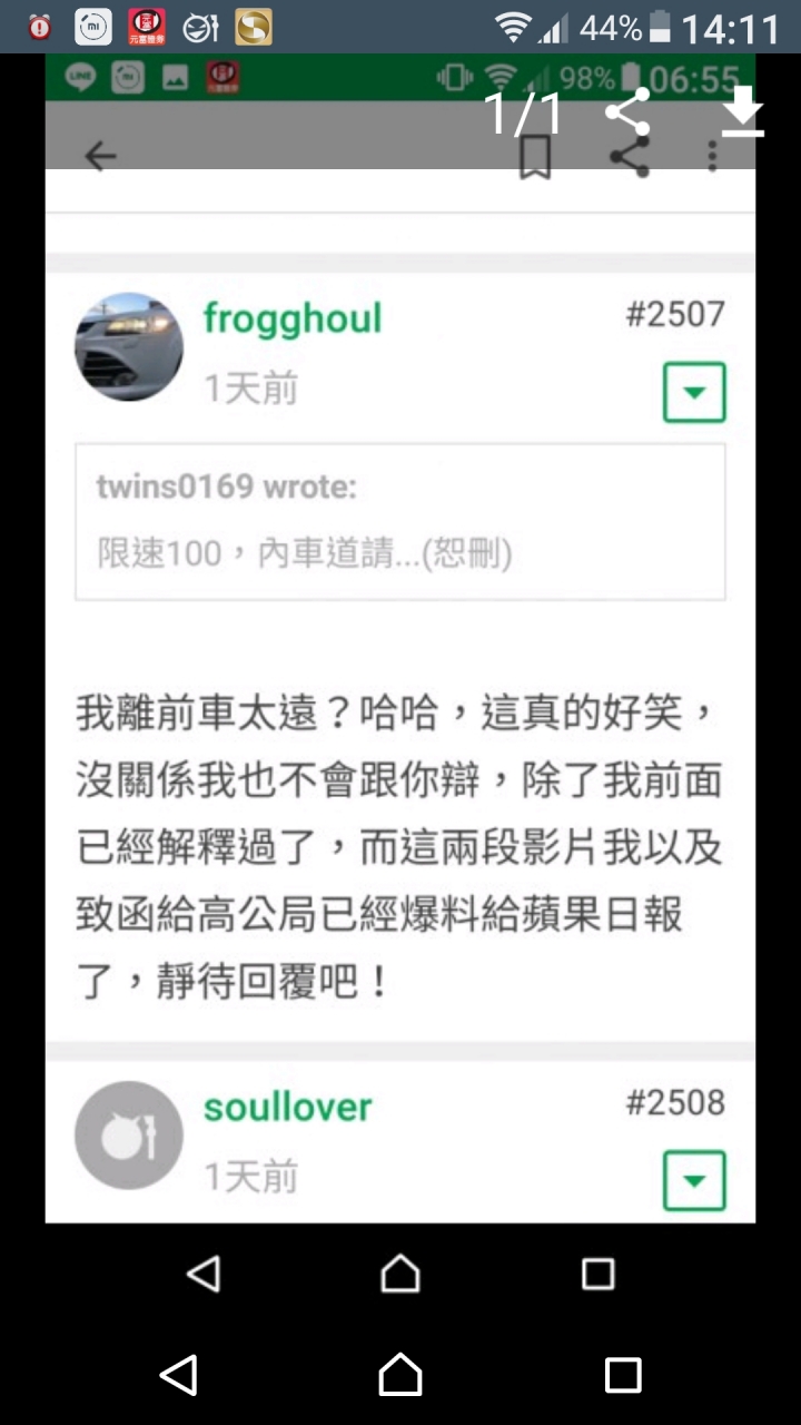 BTW 內側是超車道,超車前記得打方向燈,按照您前面所有的回復,就不知道版主是否是打方向燈馬上就衝出來的駕駛,