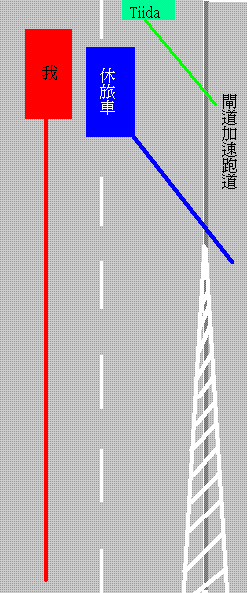 G35車是從 匣道上來 (算是 有角度+斜的 第三線車道)