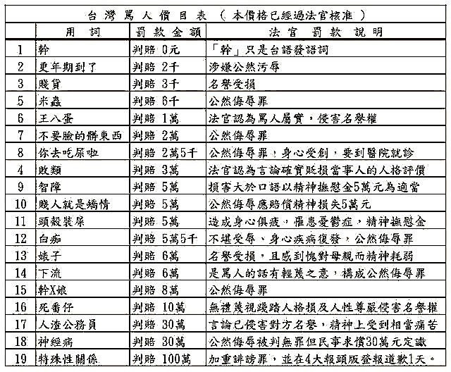 南無水蜜桃 wrote:跟智障一樣 好奇,這句話法院會如何認證?認證他罵人,罰款多少?認證此句只是口頭禪,間接認證他罵的人行為的確智障?畢竟智障這類詞語,其實很多時候比較像是形容愚蠢並非某些髒話那麼極端