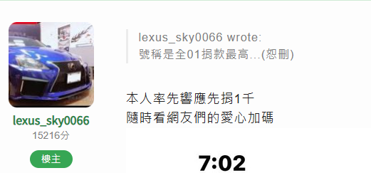 lexus_sky0066 wrote:Ps:這些小朋友都好可愛!異口同聲的表示吳哥哥的善心,hihimonkey1也因爲這張捐款單縱橫01,幾天積分暴增2000多,成為01最強新人、真是一舉多得可喜可賀雙喜臨門! 屎蓋葛格 你這樣真的不太行a之前你出來跳針我才意外發現你在意積分結果之後你還不斷出來講積分害我又爬文一次結果點開你個人發言紀錄馬上笑到噴飯你到底多在意積分啊?