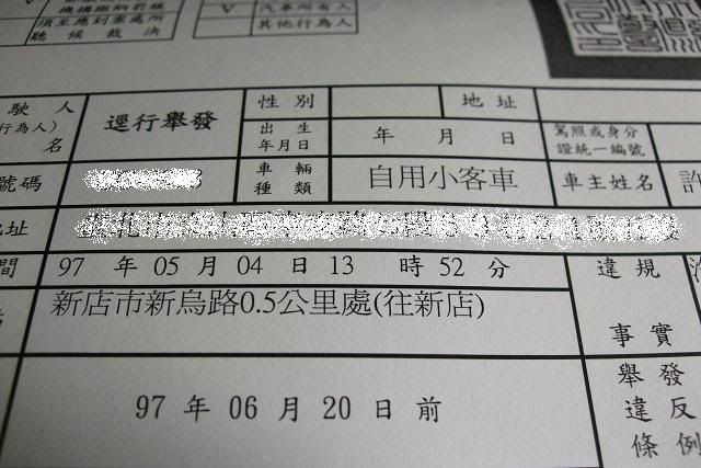 看看當初被錄影桿所攝影滴照片,那台車號模糊化滴車輛就是我們被攝影滴 ( 使用過小畫家,顯示不出EXIF檔 )