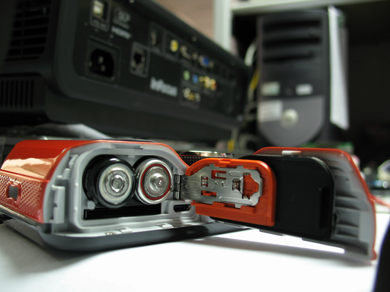 底蓋打開後就是記憶卡插槽與電池槽,C123使用的是一般的3號(AA)電池,這樣的設計可以走到哪都有電池可以補充能量。