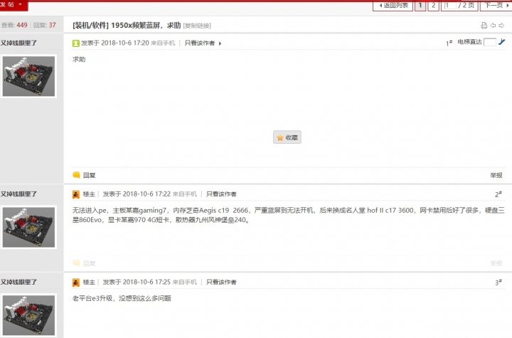 辛苦了!還在演???今年有人i7跑繪圖過熱降I5https://www.mobile01.com/topicdetail.php?f=296&t=5476062去年有人X299跑繪圖相容性降6代https://www.mobile01.com/topicdetail.php?f=509&t=5212938&p=1這些都版上的...還不是對岸的...看來也不是個案?這樓樓主賣掉的文章截圖我還留著,要小弟再貼嗎?買家接受他那顆1950X後一點事都沒有!單純就技嘉那塊板子可能跑高頻記憶體不佳...X299當機、記憶體高頻上不了也是有的...版上有,其它論壇也不少,不想挖而已!想說的是...Core架構都走過10年了,部分粉絲還拿來跟Ryzen這新架構嘴相容性?而且一副挺有風的樣子?真的!這樣一點意義也沒有,也幫版務人員省點事吧!