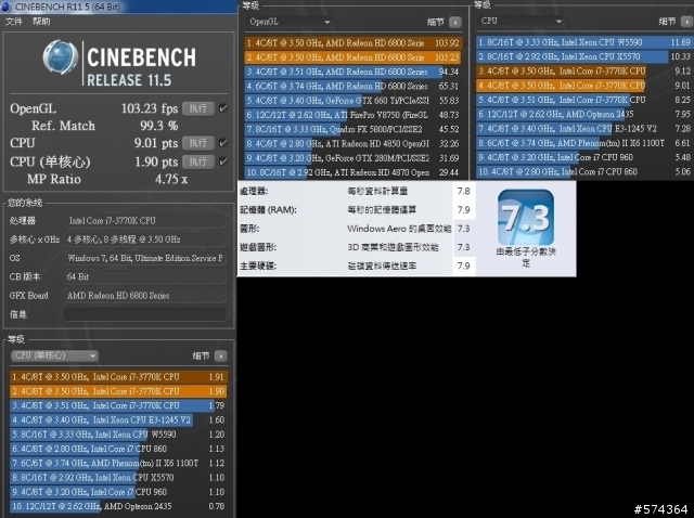1.i7-3770K(有O.C.)+ATi R6870 ; 2.E3-1245V2+GTX660 Ti