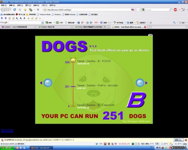 alan0099 wrote:應該沒人比我低吧 8...(恕刪) 恭喜你不是墊底的了59隻Athlon 超頻至1900+ 時脈1.61 記憶體1.5g 512mb拿來作RAMDISK果然跑不動FLASH 玩個線上小遊戲都會LAG...
