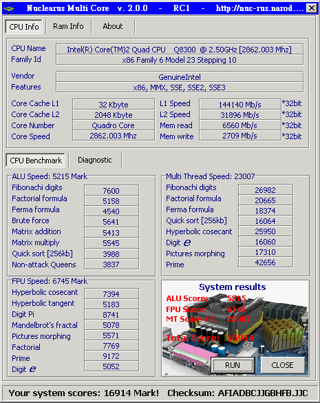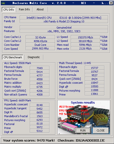 我的cpu是Q9550 OC到3.2g以下是我的分數ALU SCORE:5853FPU SCORE:7301MT SCORE 4T:21942TOTAL SCORE:16437等會再OC更高的頻率再測測!
