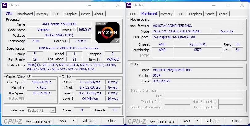 有超頻神人 PO 出, 5800X3D 的 4.8GHz 成果, 不過只有 CPU-z 資訊截圖.