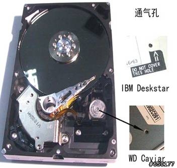 那個孔是用來上蓋組裝後調整內部機件 跟寫入磁軌資料用的這是看網頁講的.......但是我一時找不到那個網頁...現在的硬碟...上面都會有透氣孔 就如同前面大大照片所示但是那個透氣孔的構造並不簡單.並不是一個洞而已 裡面會有一些過濾設備 就像墨水莢的那種透氣孔一樣有空我再照像給各位看硬碟裡面是有空氣的!!!不是真空!!!不然磁頭是不能在磁碟表面上工作的