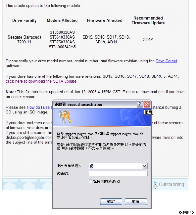 雖然我不是ST3500320AS Firmware SD15用家.不過也是在黑名單中.(尚未爆 ES.2 ST3500320NS)然而,堂堂一個官方網站釋出的韌體更新,竟然可以讓未死的一服用馬上早點投胎.這...可見得官方內部是一團亂兼六神無主.情急下推出才會讓災情繼續擴大擴大....未爆的各位,還是先等等吧~