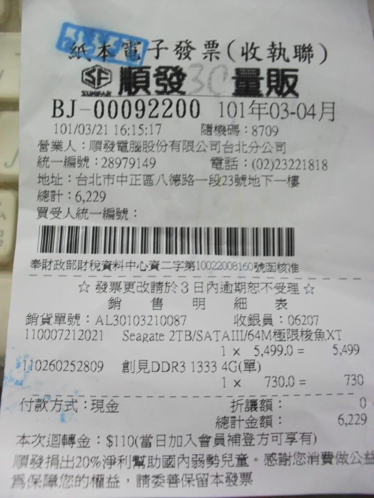 Segate單碟1TB版,2TB 3.5吋 SATAIII一年保固3300元。
