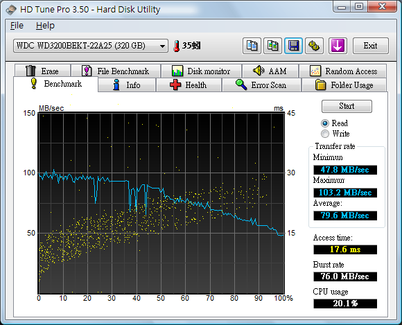 這顆雖然循序大檔輸HITACHI 7K500,不過存取時間14.3ms 還算令人滿意!