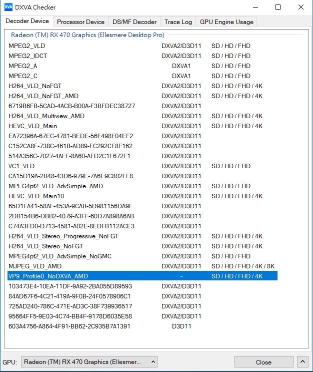相較於競爭對手的AMD RX400與RX500系列,在多媒體硬解方面僅支持到4K。並且4K硬解的編碼選項還沒有由google推動且廣泛用於YouTube上的VP9。兩者的硬件解碼能力來說可說是差了一整個世代!以下就來介紹這張GTX1060在影片硬解與多媒體播放方面的實力。