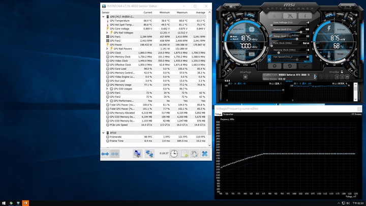 載入遊戲過程中,時脈順利來到設置的1845MHz/862mV