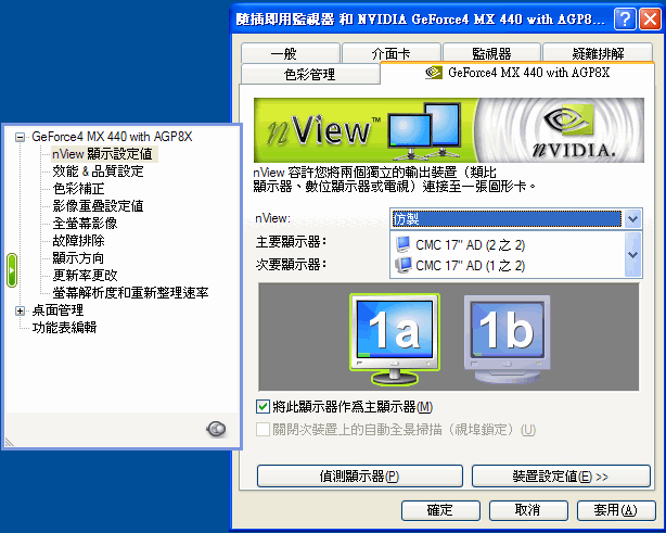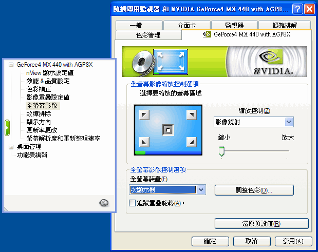 我的MOZO是用VGA接的,當然也可以換成DVI去接MOZOgivemeback大,你說雙輸出模式只能用VGA+DVI或是TV-OUT + DVI意思是我的電腦螢幕用dvi,而電視螢幕用vgs轉s端子,就可以達到雙螢幕的效果嗎?