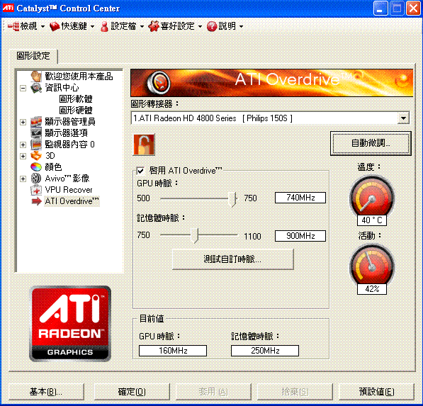 吳名氏 wrote:買到800sp的48...(恕刪) 剛才使用ATI CCCAI Overdrive使用自動微調也應該會是穩定的數據第一次頻率拉到595第二次頻率拉到620625應該是OK的再去其他討論站看看安全數據最高可以到多少