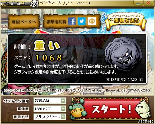 720P 最佳品質 9419 分(我螢幕沒FHD所以沒辦法測)CPU: Intel i5-2400主機板: MSI H61MU-E35RAM: 8GB (Windows 7 64bit Ultimate)顯示卡: 藍寶 HD6670 GDDR5 1GB說真的, 我測一般畫質僅僅103xx分, 沒高多少, 差異看起來也不大...這遊戲應該不怎麼耗效能吧...不過我工作用電腦開 FullHD 一般畫質只能到 990 分...(記得是 E6600 4GB + nV GTS450, 應該不可能這麼離譜)