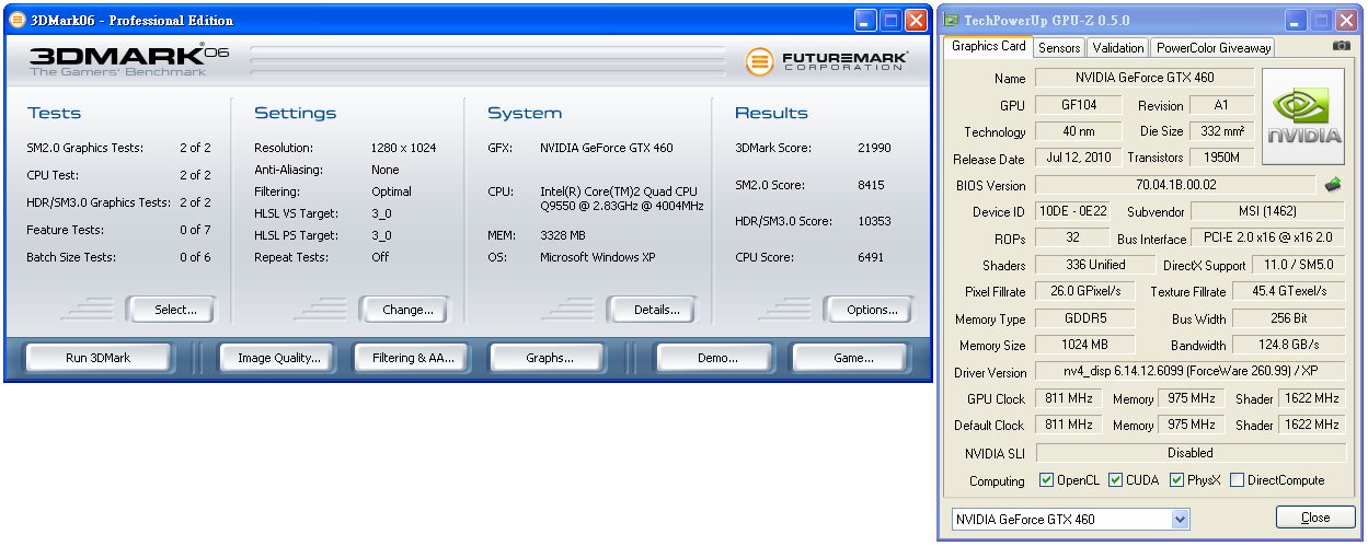 順邊貼張460GTX HAWK 和 460GTX HAWK Talon attack版本的3DMARK06數據,