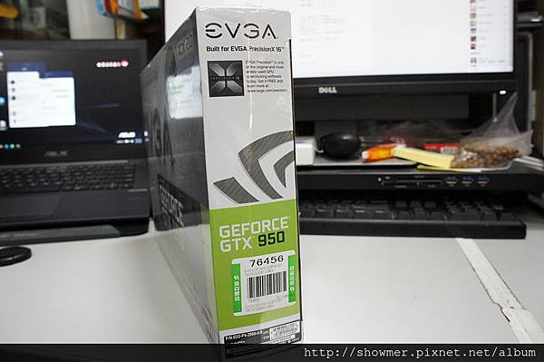 但 EVGA GTX 950 選擇比較環保的小盒包裝,所以在展示架上會比較低調~~大家想買可要睜大眼先找到
