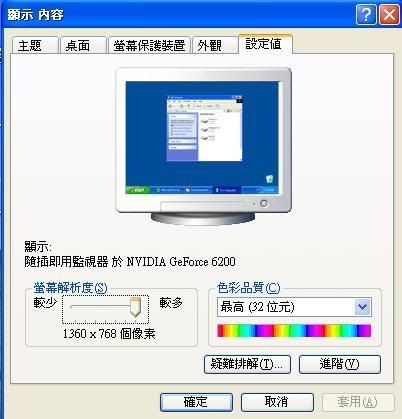 0926414414 wrote:我跟你也遇過相同的問...(恕刪) 我知道阿之前用ati 9200se的時候 是一個vga 一個dvi的 也是接上就可以啦可是如同我所貼出來的圖在桌面→內容→設定值 那裏根本沒有第二個螢幕讓我去選啊 然後再nvidia control panel裡面也沒有雙螢幕選項啊