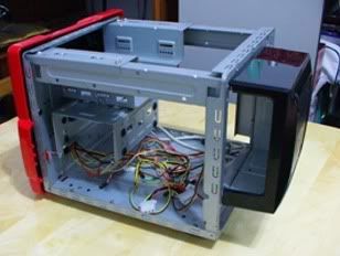 (9)主機板裝到機殼,機殼是aopen的G326,我挑了紅色的這款,另外還有款黑色的可以選。