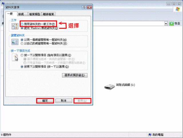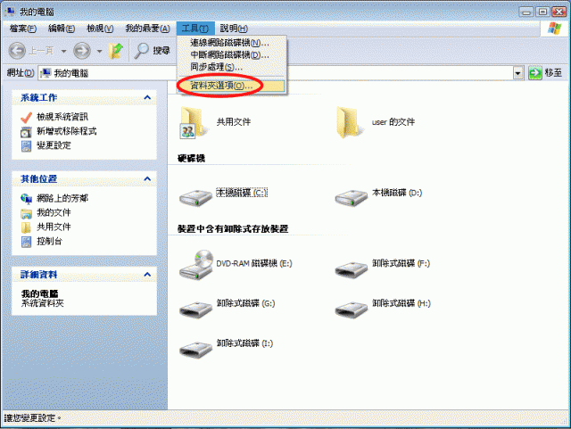 工具----資料夾選項------ 一般 ----- 啟用資料夾的一般工作----確定