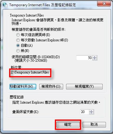 設定瀏覽歷程紀錄,將IE的暫存也改到RAMDISK裡面: