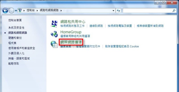 接著將Internet Explorer8的網頁快取也設定到RAMDISK中,選擇控制台-->網路與網際網路: