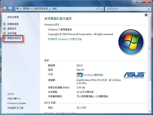 ▲可以從控制台-->系統及安全性-->系統裡面呼叫系統資訊。
