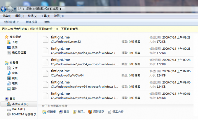 從容量看來有兩個版本應該是x64與x86,建議對應容量大小將TINTLGNT.IME放入對應的位置