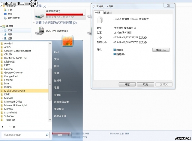2. 開啟"電腦"選擇系統磁區(預設C:)按滑鼠右鍵選擇"內容",點選"磁碟清理"後,點選"清理系統檔",接著點選"更多選項"標籤,點選"系統還原和陰影複製"內的"清理"按鈕。再點回"磁碟清理"標籤,勾選全部"要刪除的檔案"中所有選項,再點選確定。不怕麻煩可再用"CCleaner"和"清除系統垃圾.bat"清除最後一些垃圾檔案。