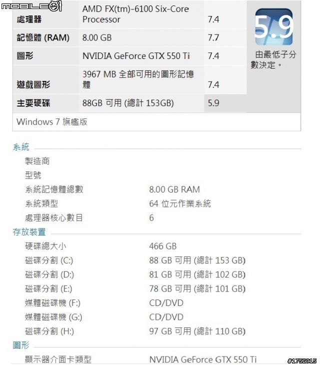 gracestar wrote:看起來CPU要超到4...(恕刪) 單顆M4 64G就7.9了CPU: AMD A8-3850RAM: 8G DDR3-1866VGA: APU內顯HD: M4 64Gx1