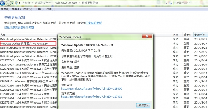 前幾天看了這篇,查了一下看有沒有中獎!結果我的Win7有裝KB2982791和KB2970228這兩個.沒發生問題一切正常,也就不以為意!
