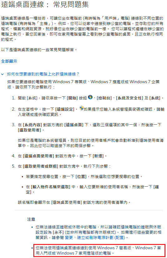 資料來源:http://windows.microsoft.com/zh-TW/windows7/Remote-Desktop-Connection-frequently-asked-questions