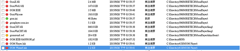 下方是救援找到GOM的相關檔案 其中該2015-9-26 下午03:59 就是安裝該檔案的時間點