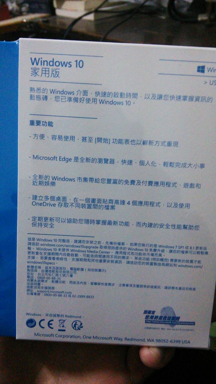 這個是彩盒版,內附可安裝windows 10的USB,售價約3800~4200