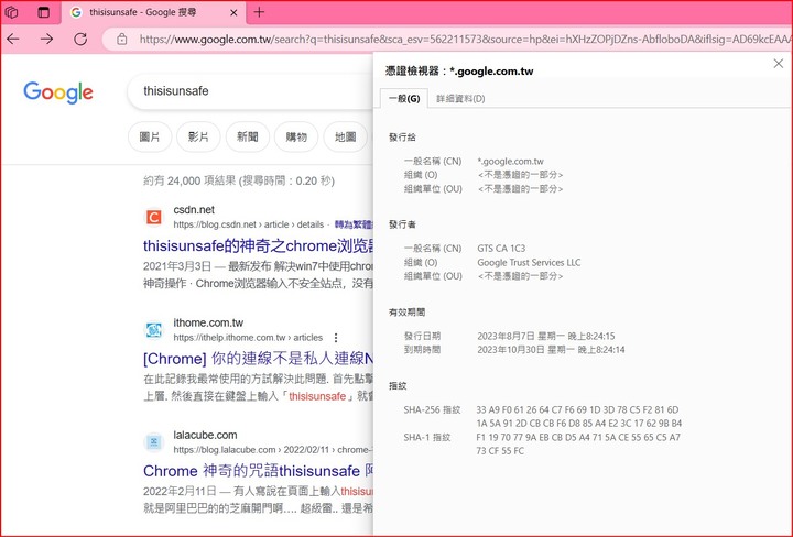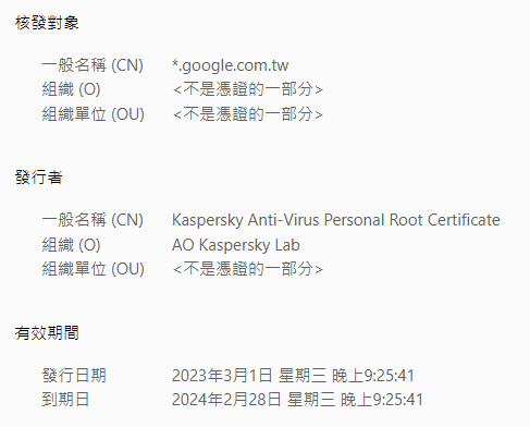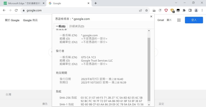 於是我把Google Chrome瀏覽器內的google.com憑證匯出