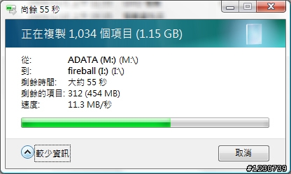 Vista : 約10分 Vista 顯示傳輸Speed Max 8.5mbyte