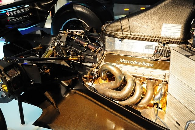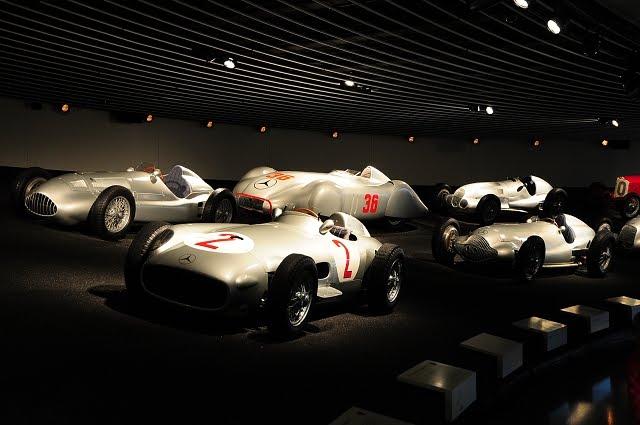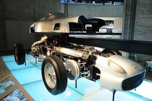 離開出口,牆上還掛了一系列創下里程碑的車輛,比方說創下最速車紀錄的W125