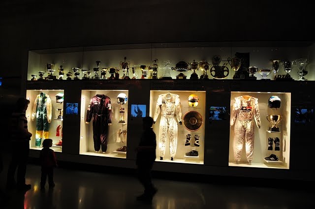 最後一個展區是銀箭傳奇,因為是最下層了,把兩個螺旋的空間全部拿來作為一個賽道,展示從最早的賽車一直到最先進的F1。