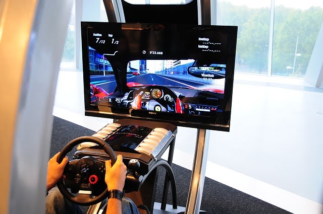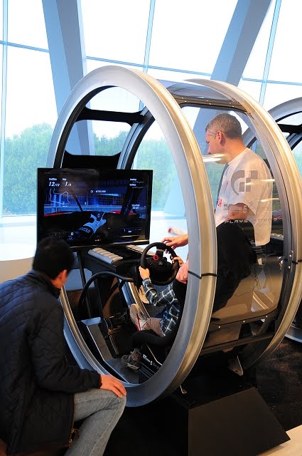 超跑旁邊還有PS3的GT5序章可以玩,這個框體好帥啊!