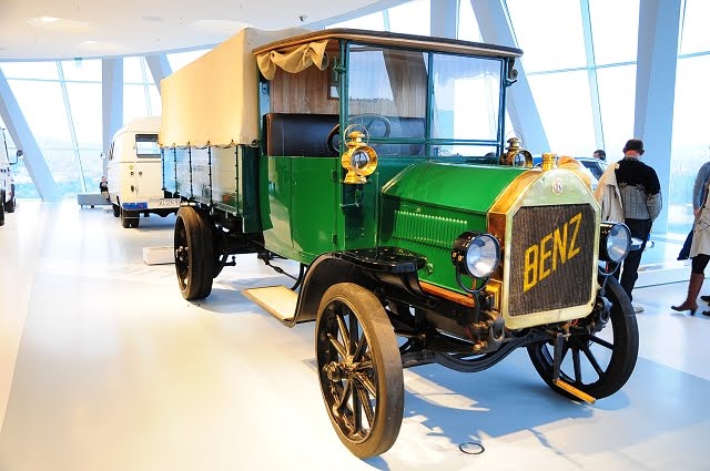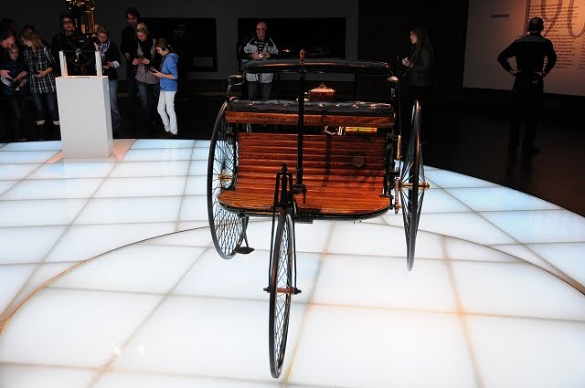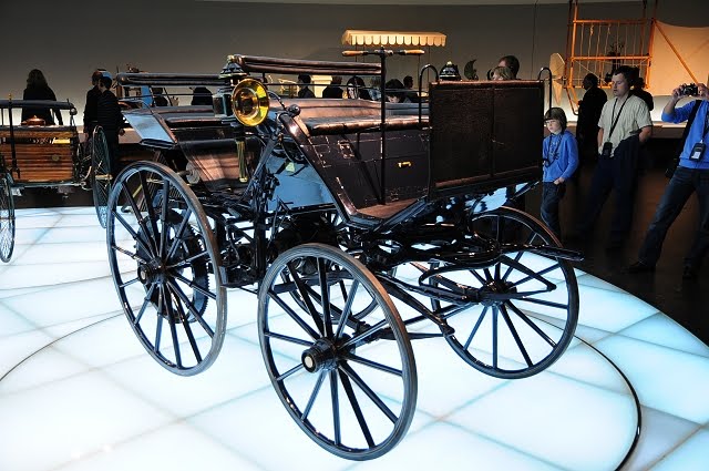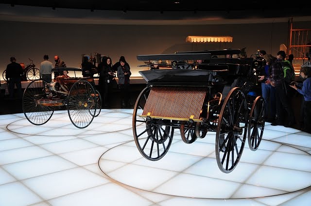 這就是Karl Benz於1886年發明的第一台汽車,單汽缸954cc的汽油引擎可以輸出約0.75匹馬力,極速達到16km/h。雖然還沒找到前輪轉向的解決方法而用三輪設計,不過已經是劃時代的創舉。