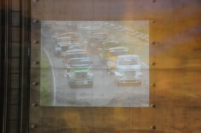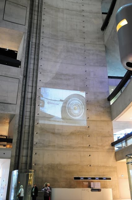 在電梯上升跟下降的時候,都會投射影片到對面的牆上,講述車廠的歷史